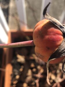 Once a rose is pollinated, it gets a rose hip or a swelling of the ovary.